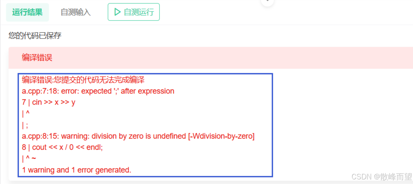 这种场景代码是程序编译没有语法问题,编译产生了可执行程序,程序运行时出现了问题,比如:段错误、除数为 0 等。