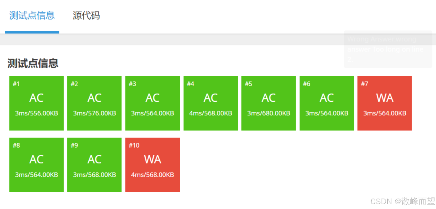 一个题目可能有多个测试用例,有部分测试用例通过,但是也有部分测试用例未通过,基本的原因是代码考虑不周全。这种情况是最经常遇见的情况。