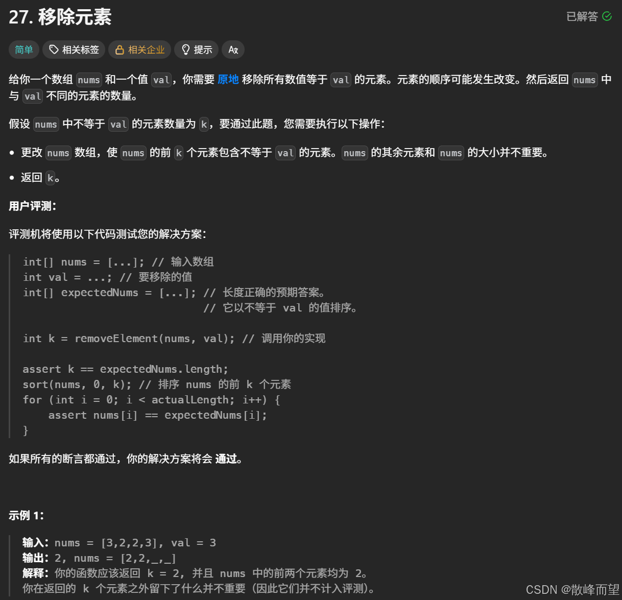 例如: leetcode 上一道简单的核心代码模式的题 --- 移除元素