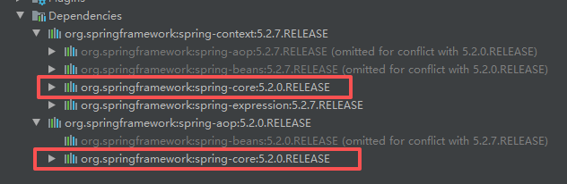 可以看到,spring-core的依赖从原示例代码版本的5.2.7变为了5.2.0
