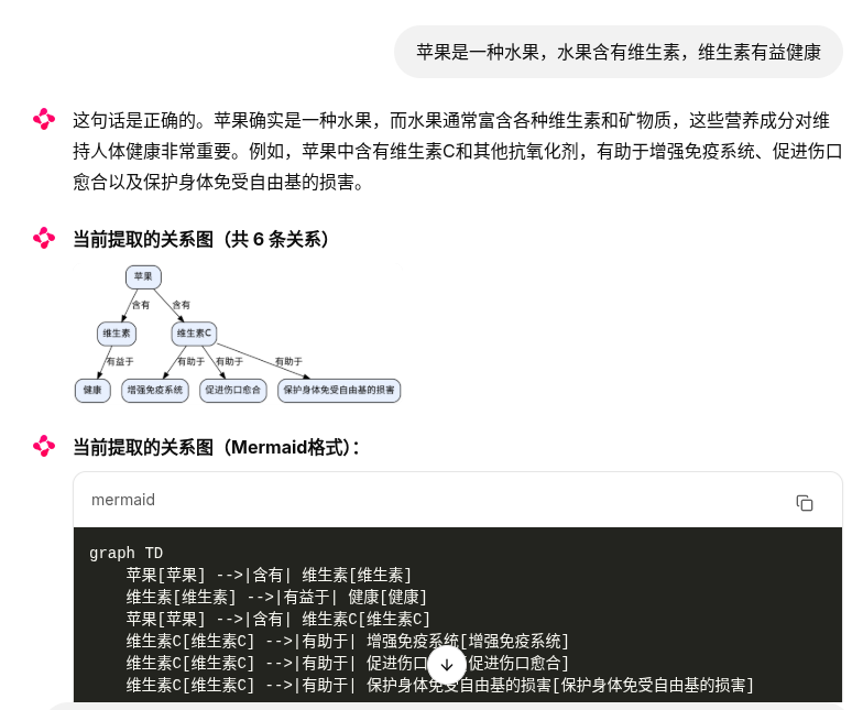 通过 Chainlit,用户可直接在 Web 界面与 AI 代理交互,实时查看关系图。