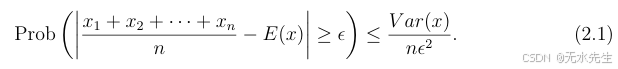 定理 2.3(切比雪夫不等式)设 x 为一个随机变量。则对于 c > 0,