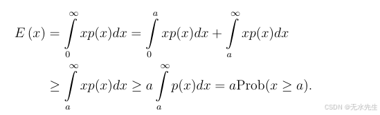 因此,Prob(x≥a)≤E(x)/aProb(x ≥ a) ≤ E(x)/aProb(x≥a)≤E(x)/a。对于离散型随机变量,同样的证明适用于求和而非积分的情况。