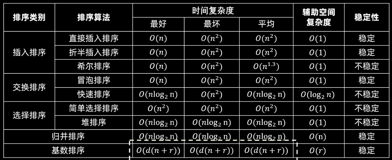 - 最坏情况(初始序列逆序),进行n-1次排序,总的关键字比较次数为 n^2 / 2 ,记录移动次数为 (3n^2 )/ 2