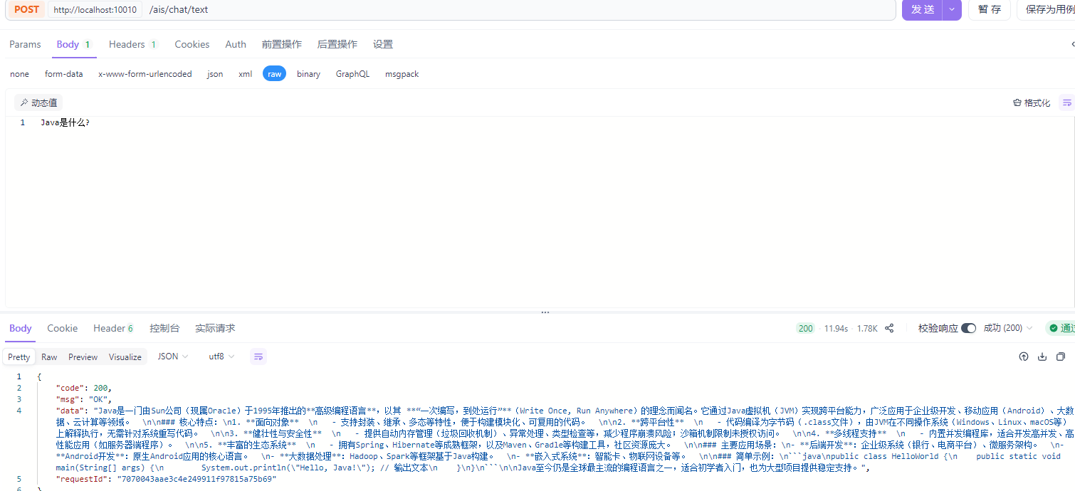 可以看到,这个接口的请求是通过body方式传递文本内容的。