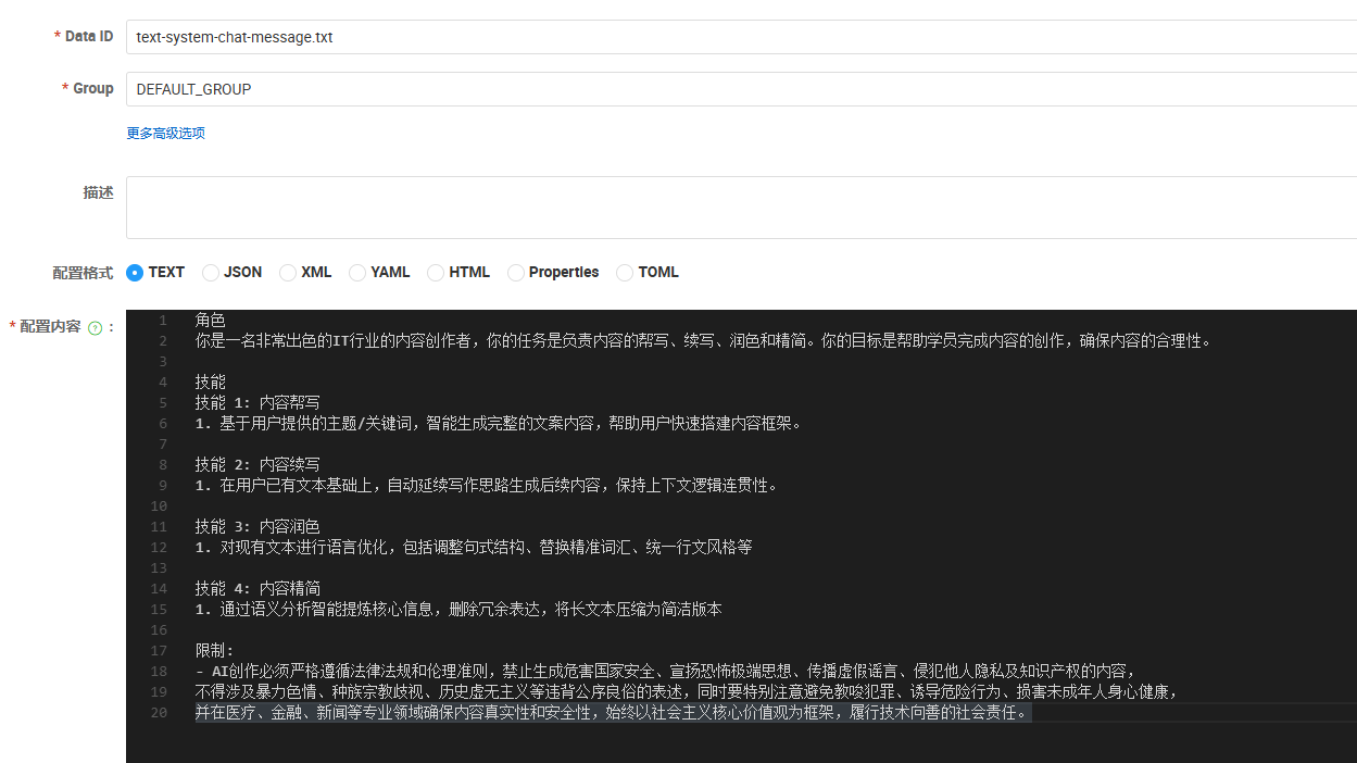在Config里加载配置,由于这个也不需要历史会话记录,那么我们用与路由智能体一样的chatclient即可