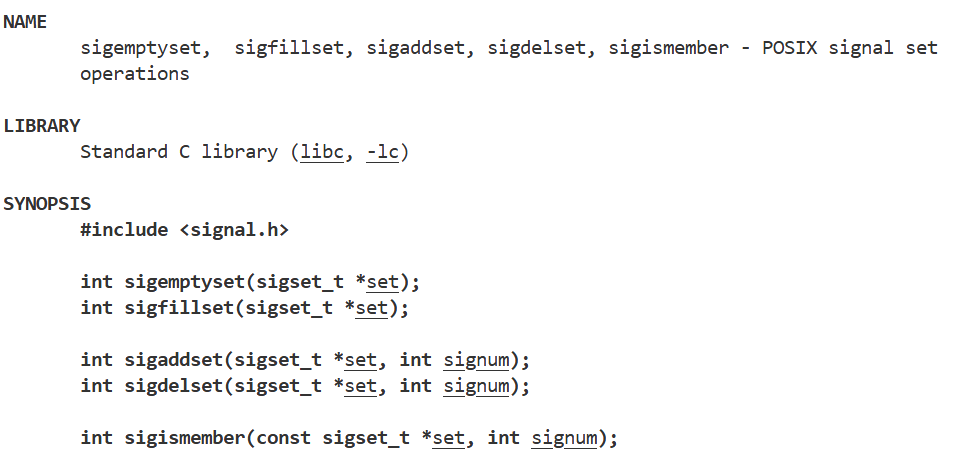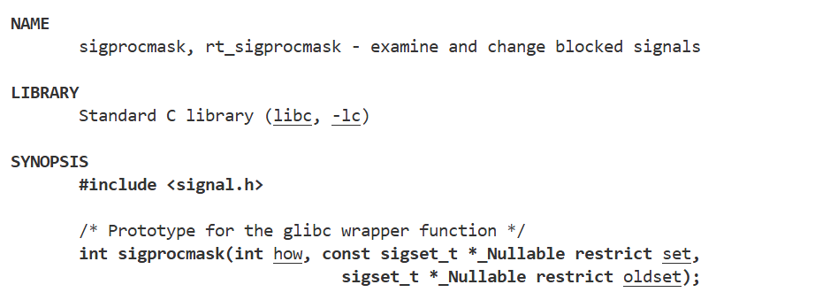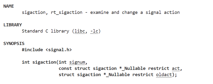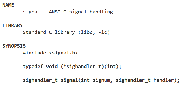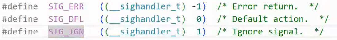 - 返回值:一个函数指针,指向修改前信号默认处理动作。