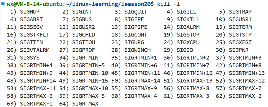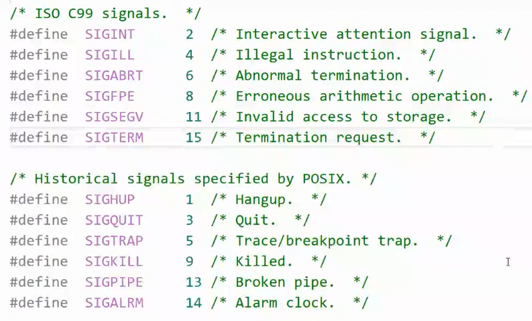 - kill -l罗列出来的信号:2) SIGINT <==> #define SIGINT 2