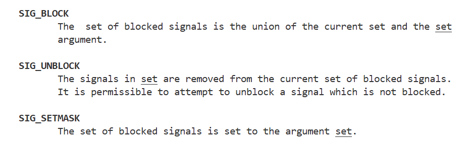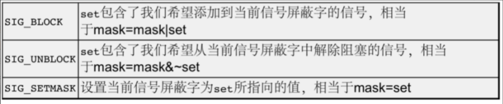 当某个信号的处理函数被调用时,内核自动将当前信号加入进程的信号屏蔽字,当信号处理函数返回时自动恢复原来的信号屏蔽字,这样就保证了在处理某个信号时,如果这种信号再次产生,那么它会被阻塞到当前处理结束为止。如果在调用信号处理函数时,除了当前信号被自动屏蔽之外,还希望自动屏蔽另外一些信号,则用sa_mask字段说明这些需要额外屏蔽的信号,当信号处理函数返回时自动恢复原来的信号屏