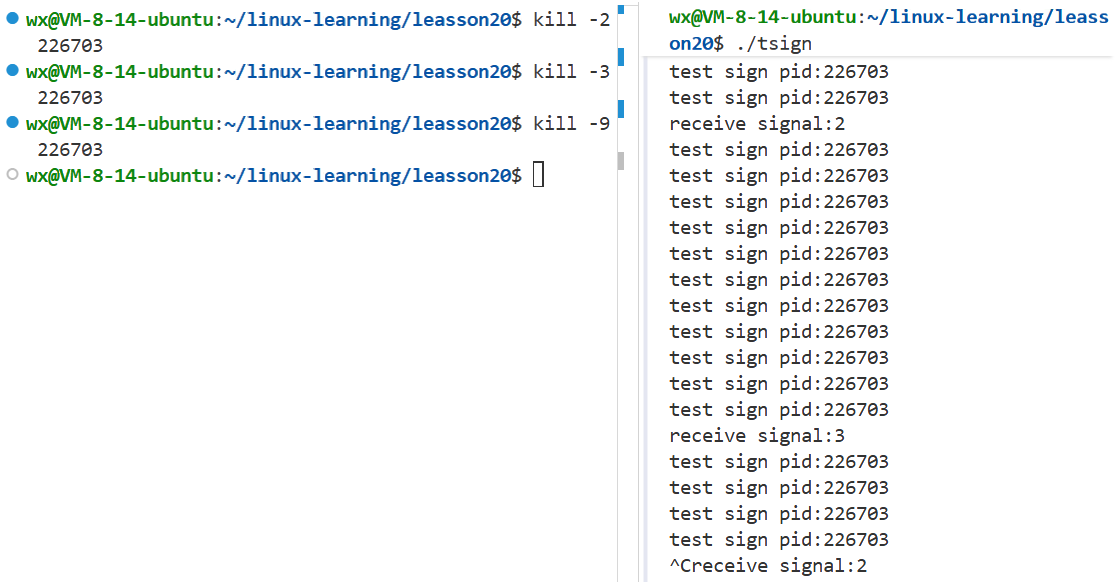 std::cout<<"test sign pid:"<<getpid()<<std::endl;