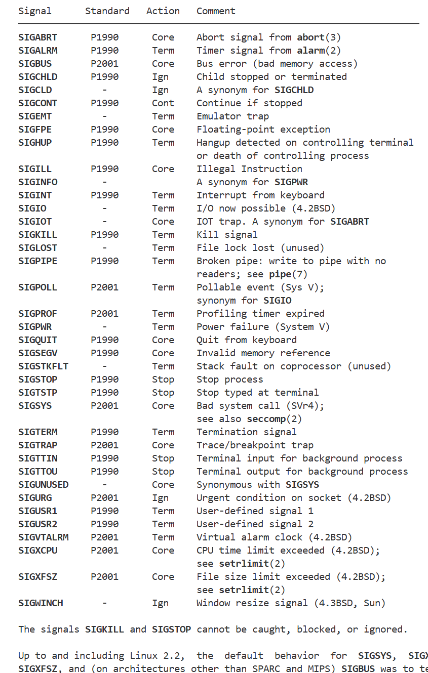 - 9号和19号信号不可被捕捉,不可被忽略和自定义,9号为管理员信号,默认动作终止进程。