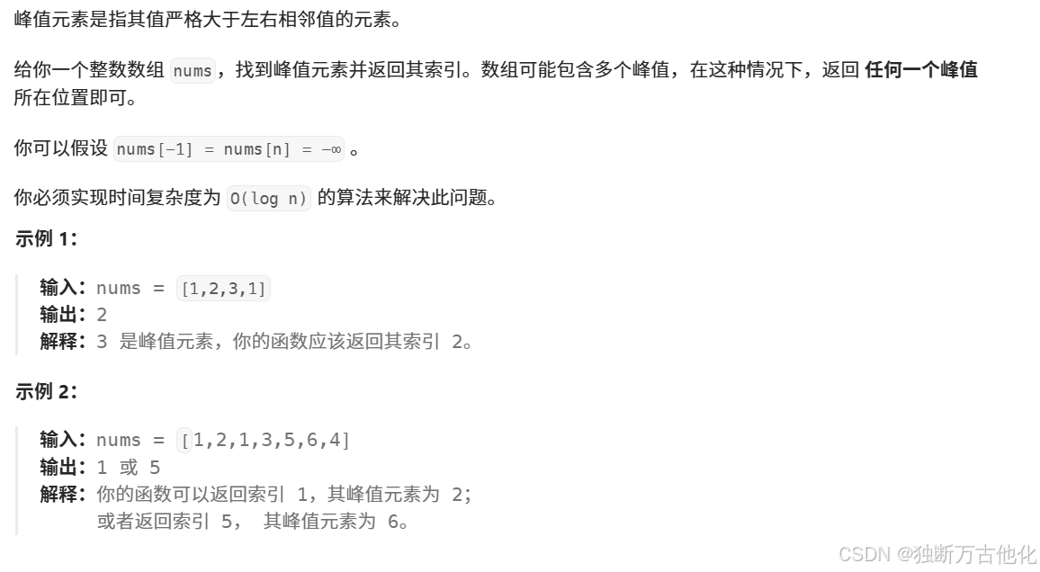 选取一个下标 i ,当 i 下标值大于 i-1时,说明峰值在 i 或i的右边,将left 指向i下标,因为 峰值可能为 i 下标,所以不是 i+1;当i 下标 小于 i-1 时,说明峰值在 i下标的左边,将right 指向 i - 1的位置。