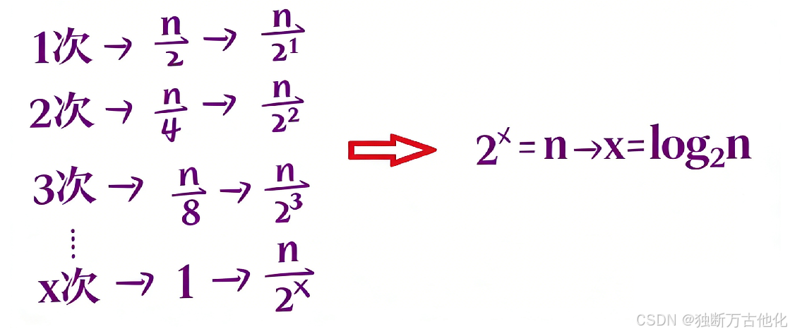 当取一次中间值可以减少一半的数,所以根据规律可以得出时间复杂度为 O(logN)。
