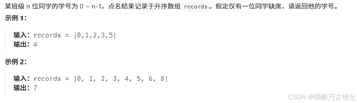 题目链接:173. 0 ~ n-1 中缺失的数字