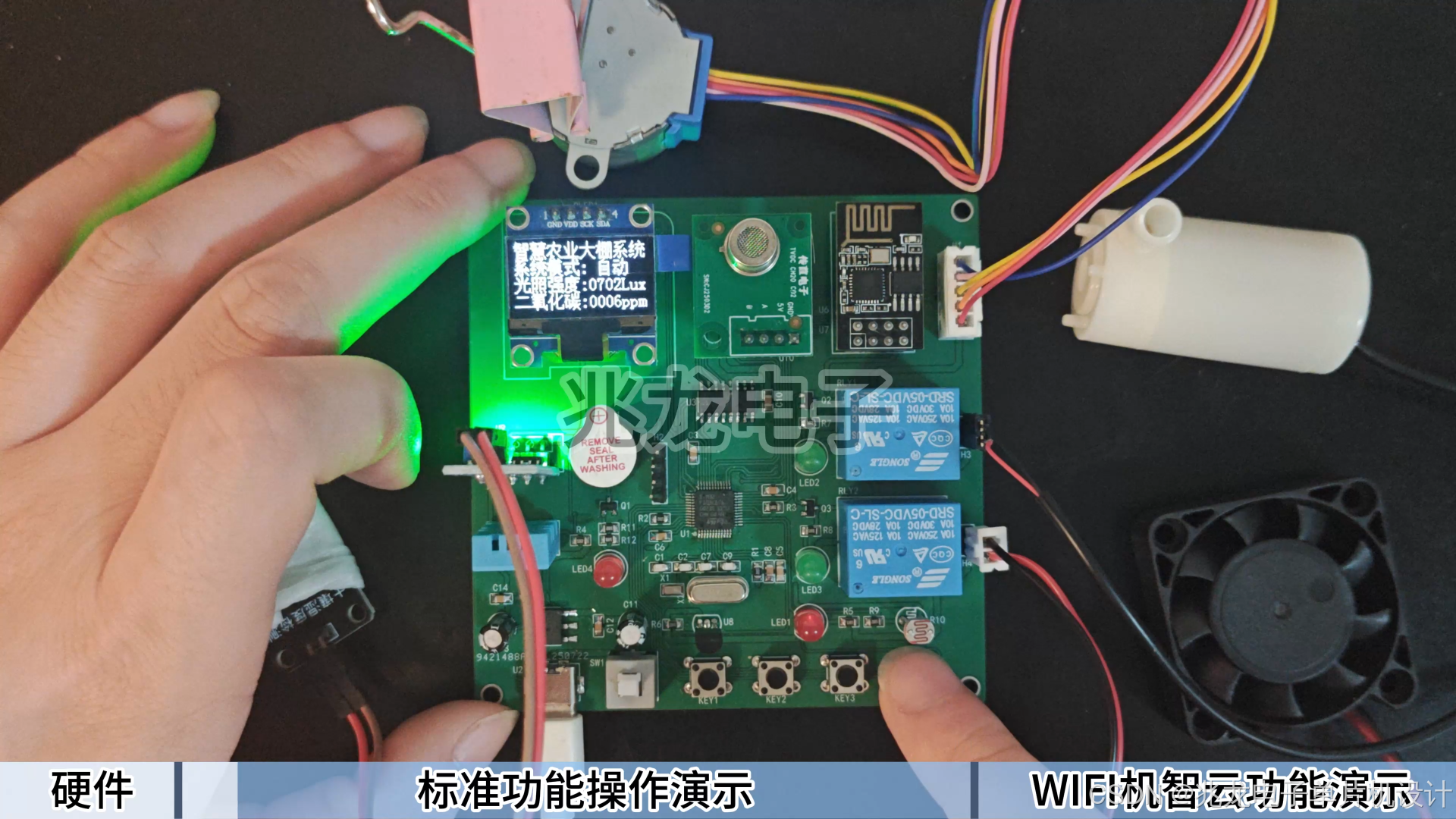 从使用体验与农业大棚精细化管控效率角度,该系统突破了传统农业大棚管理方式的局限:一是实现了多维度环境监测与全周期作物生长联动(如支持温湿度采集、土壤墒情实时监测、光照强度检测、CO₂浓度感应,联动蓝牙通信模块、异常声光提醒模块、大棚智能调控执行模块),无需种植户或管理员现场逐一排查环境参数与设备状态,减少农业大棚管理的繁琐性与环境调控的延迟性;二是配备 OLED 实时显示模块,直观呈现当前大棚运行参数(温度 / 湿度 / 土壤墒情 / 光照强度)、作物生长环境评估、系统运行状态(正常 / 异常)及预警类型,同时支持数据自动存储(可通过蓝牙传输至移动 APP / 乡村农业服务平台 / 大棚种植运维管理平台),方便种植户与农业管理员长期追溯大棚环境历史数据与设备运行记录,也为优化大棚种植管控方案、排查设备故障隐患及大棚集群高效运维提供完整数据支撑;三是新增个性化环境预警与自动调控执行功能,当监测到异常参数(如高温 / 低温、土壤过干 / 过湿、光照不足 / 过强、CO₂浓度偏低 / 偏高、灌溉设备卡滞),系统根据环境异常类型自动触发对应执行动作(同时通过声光提醒模块反馈预警信息与设备当前工作状态,蓝牙同步推送至关联移动终端),并联动大棚设备执行智能调控操作(如联动高温故障,自动开启通风设备、启动降温喷淋、记录异常发生时间与环境参数数据),无需人工现场干预即可实现农业大棚的智能化精细化管控,大幅提升了大棚管理的便捷性与种植运维的高效性。