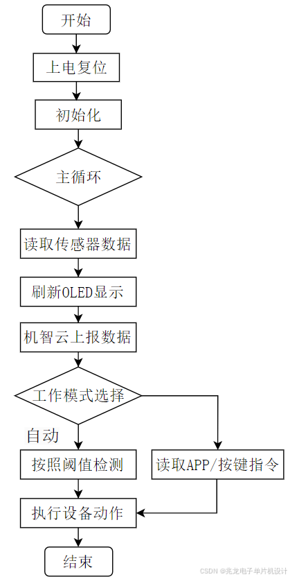 (5)自动模式:当环境温湿度、土壤温湿度超出阈值,自动开启风扇进行除湿和降温、