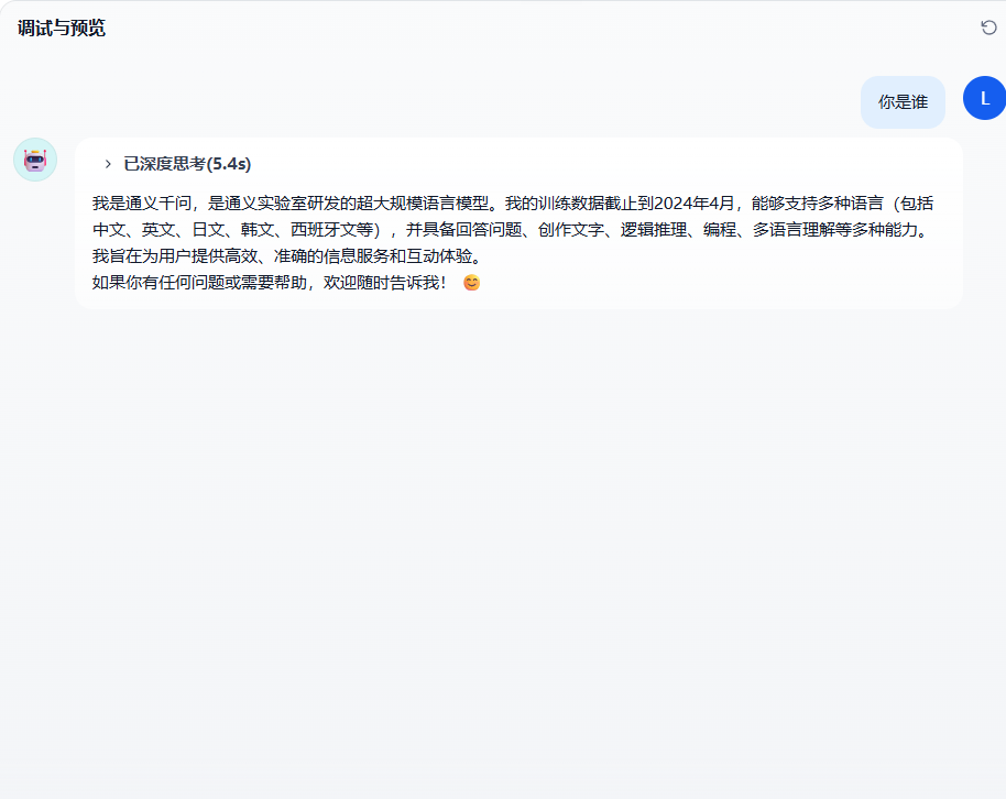 进入对话界面,输入测试内容即可验证模型响应能力: