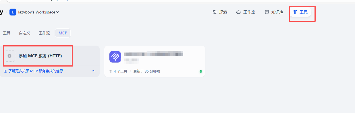 - 进入Dify后台,点击「工具」→「添加MCP服务」,进入配置页面: