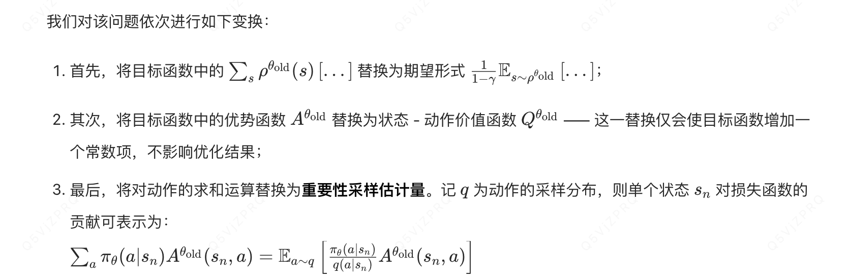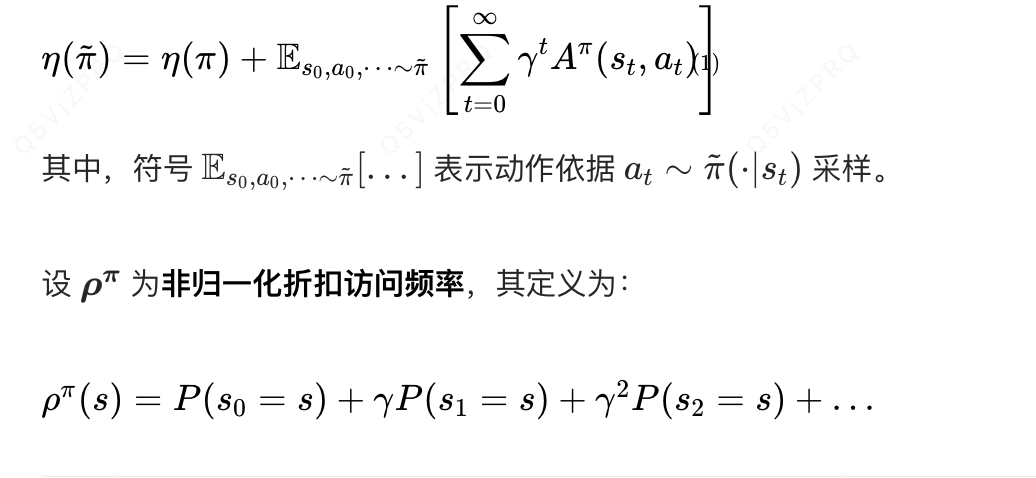 [1. 把新策略和旧策略的性能差,转化为可计算的、和优势函数相关的形式:](#1. 把新策略和旧策略的性能差,转化为可计算的、和优势函数相关的形式:)