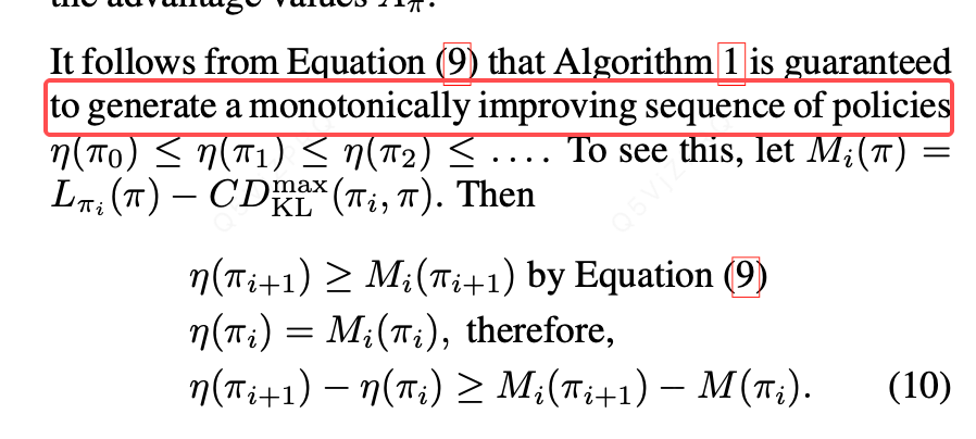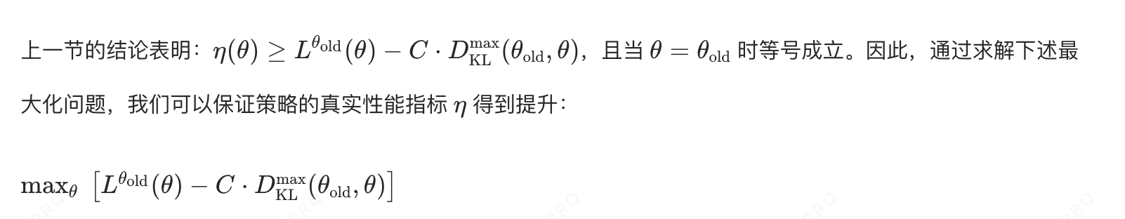 只要一个策略更新能提升不等式右侧的取值,就一定能提升策略的真实性能。