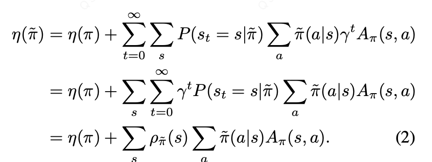 [3. 结论:策略性能提升的充分条件,也是精确策略迭代(选能提升性能的理论依据。](#3. 结论:策略性能提升的充分条件,也是精确策略迭代(选能提升性能的理论依据。)
