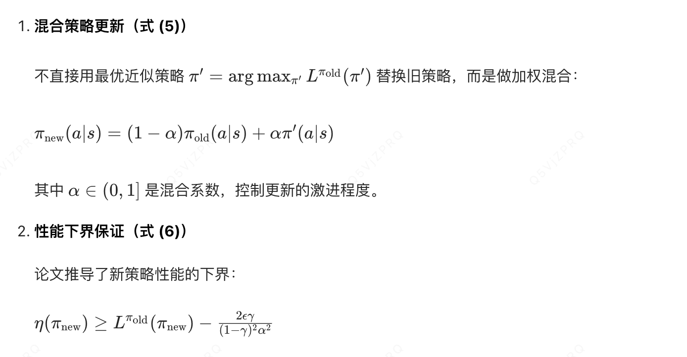 为此引入保守策略迭代 ,核心逻辑是「策略更新不激进,通过混合新旧策略保证性能下界」: