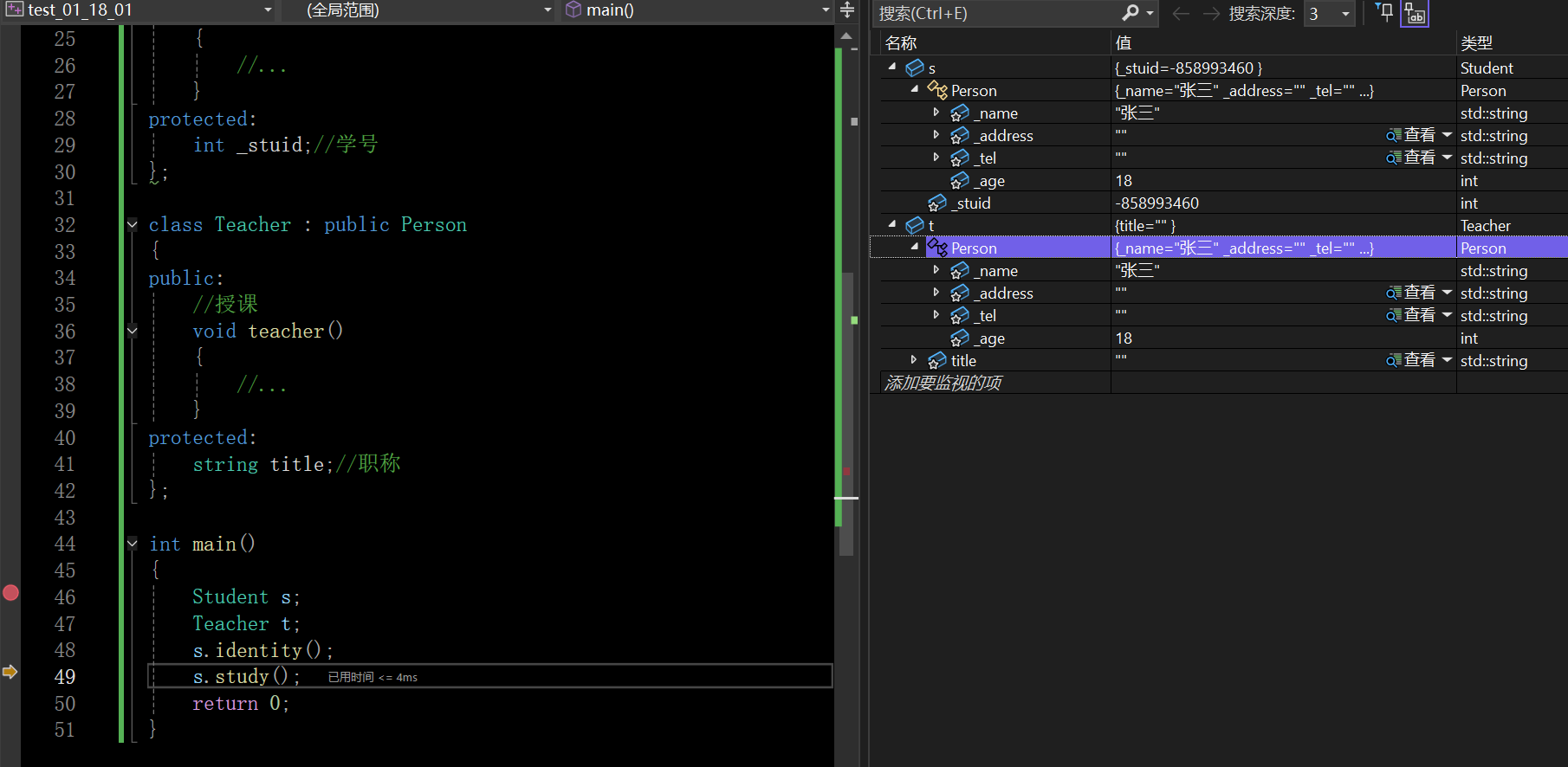 下面的Person是基类,也称作父类。Student是派生类,也称作子类。(因为翻译的原因,所以既叫基类/派生类,也叫父类/子类)