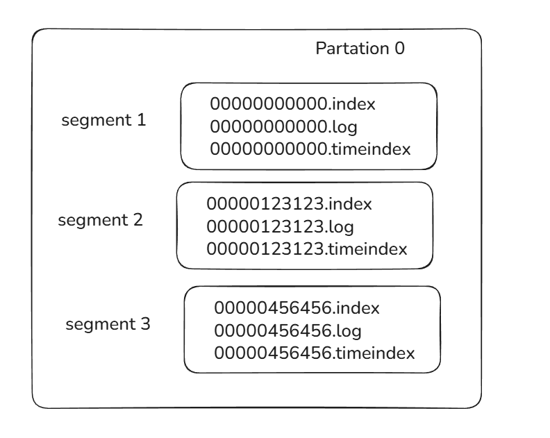 Partition 结构:在服务器上的表现形式就是一个一个的文件夹,每个partition的文件夹下面会有多组segment文件,每组segment文件又包含.index文件、.log文件、.timeindex文件三个文件。log文件就实际是存储message的地方,而index和timeindex文件为索引文件,用于检索消息。