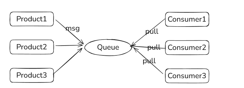 生产者将消息放入消息队列后,由消费者主动的去拉取消息进行消费。