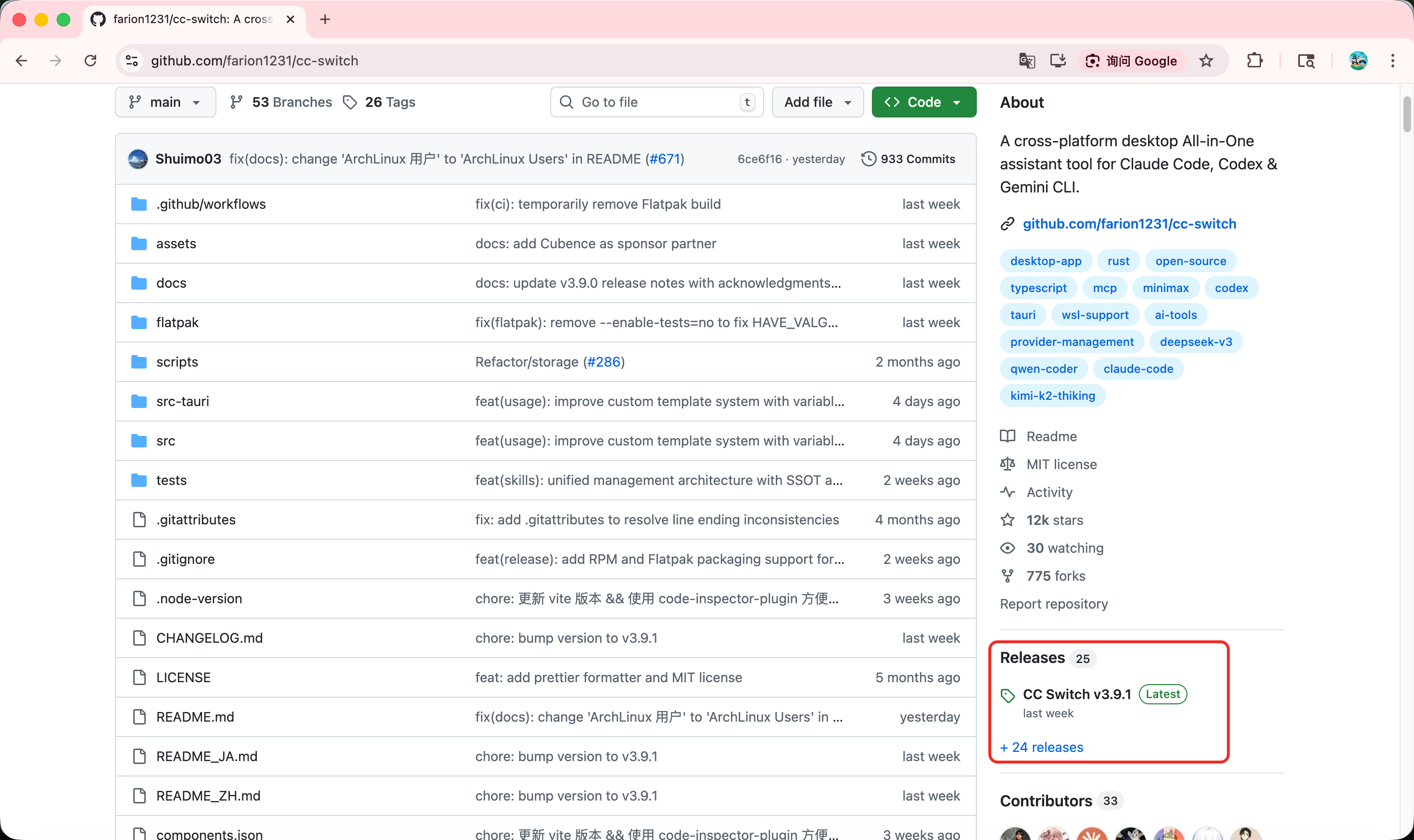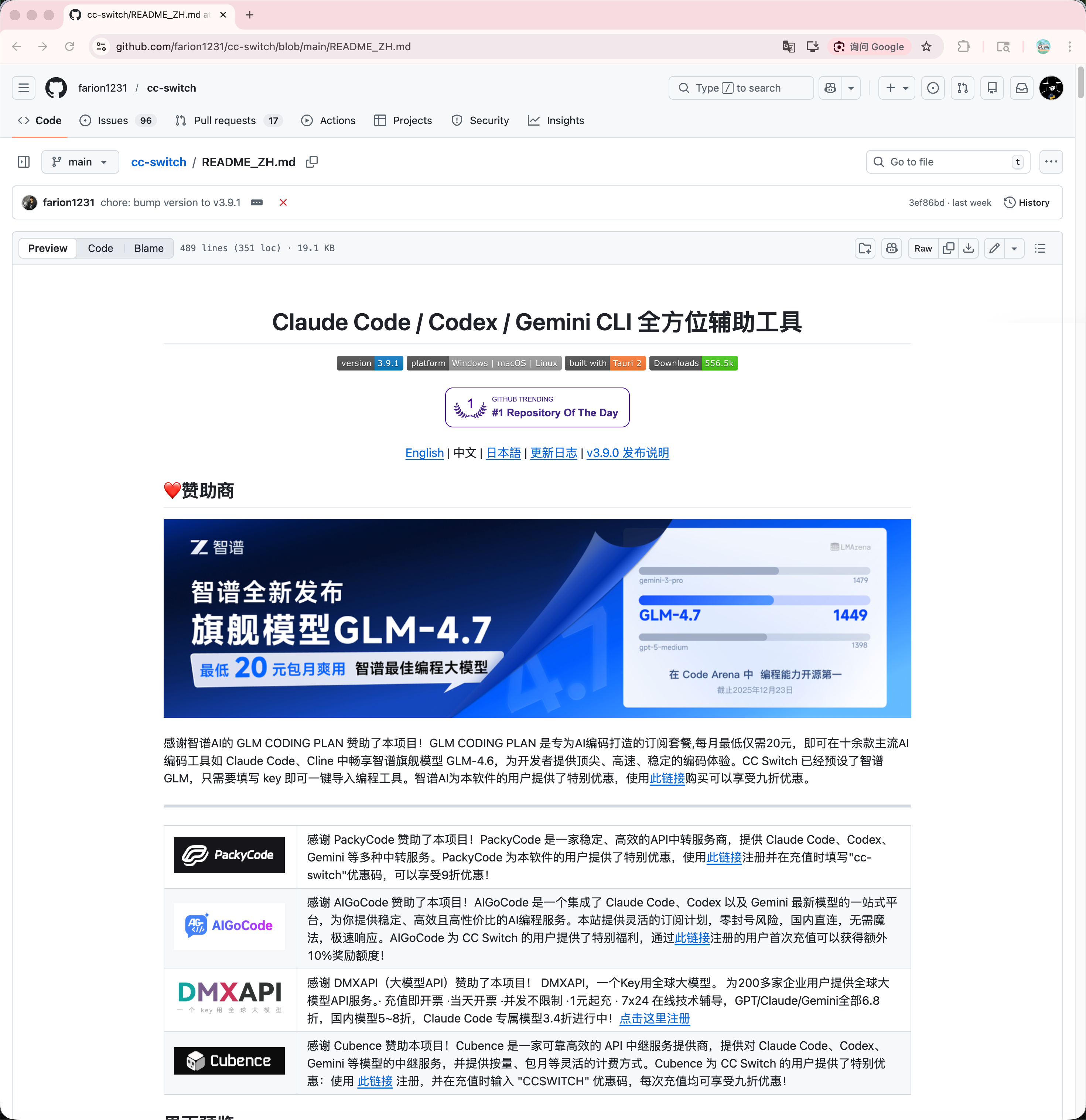 打开 gitHub 仓库:https://github.com/farion1231/cc-switch