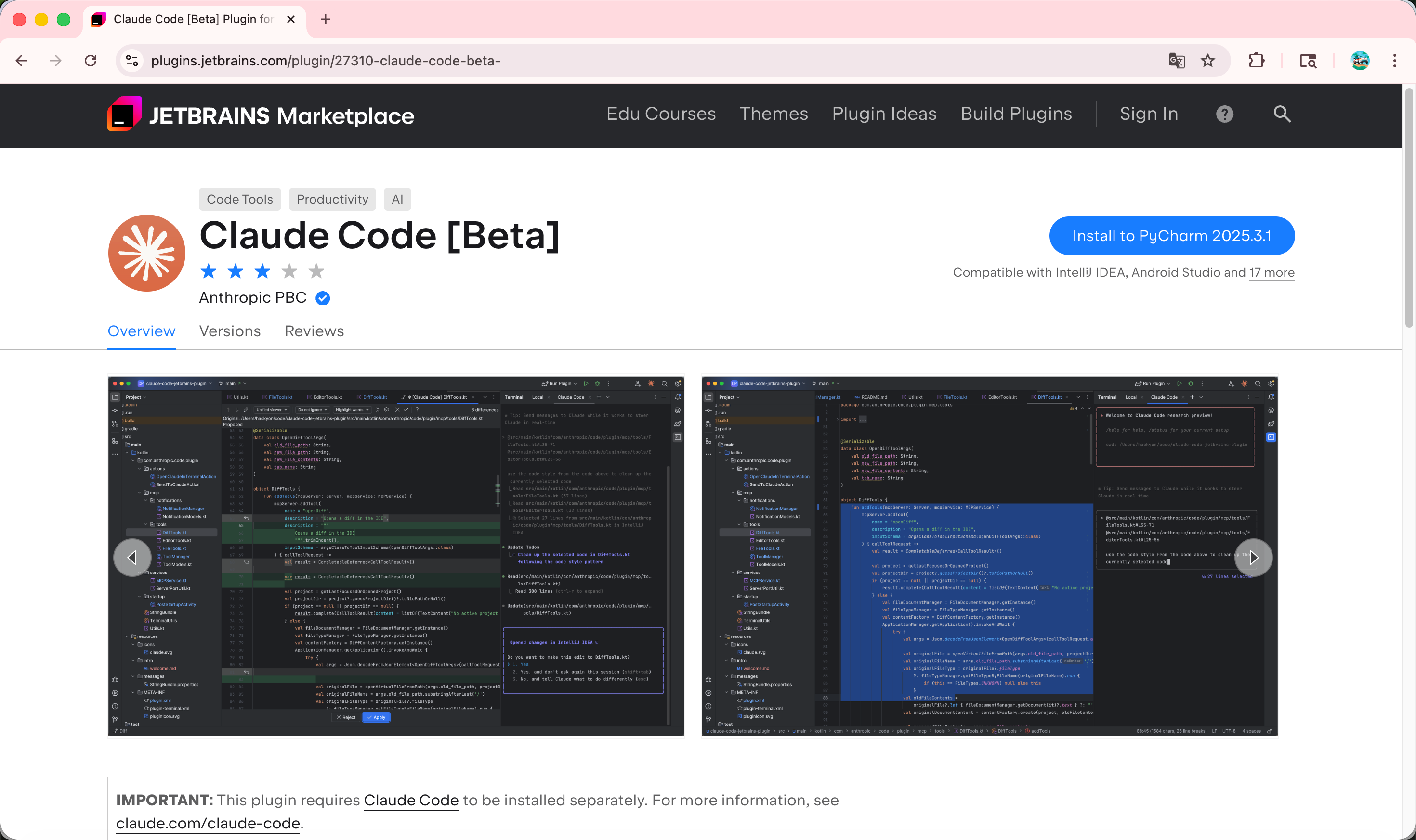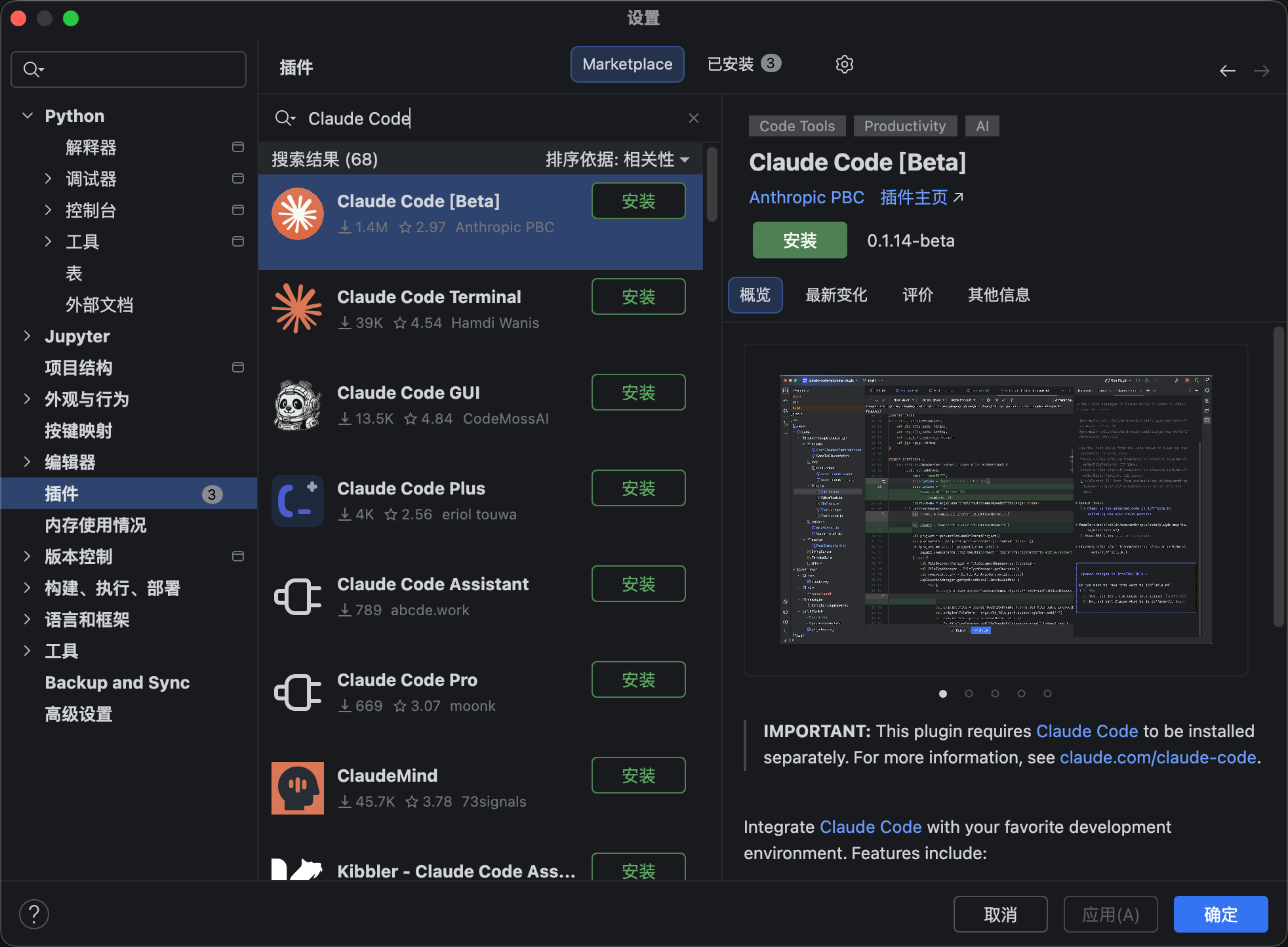 https://plugins.jetbrains.com/plugin/27310-claude-code-beta-