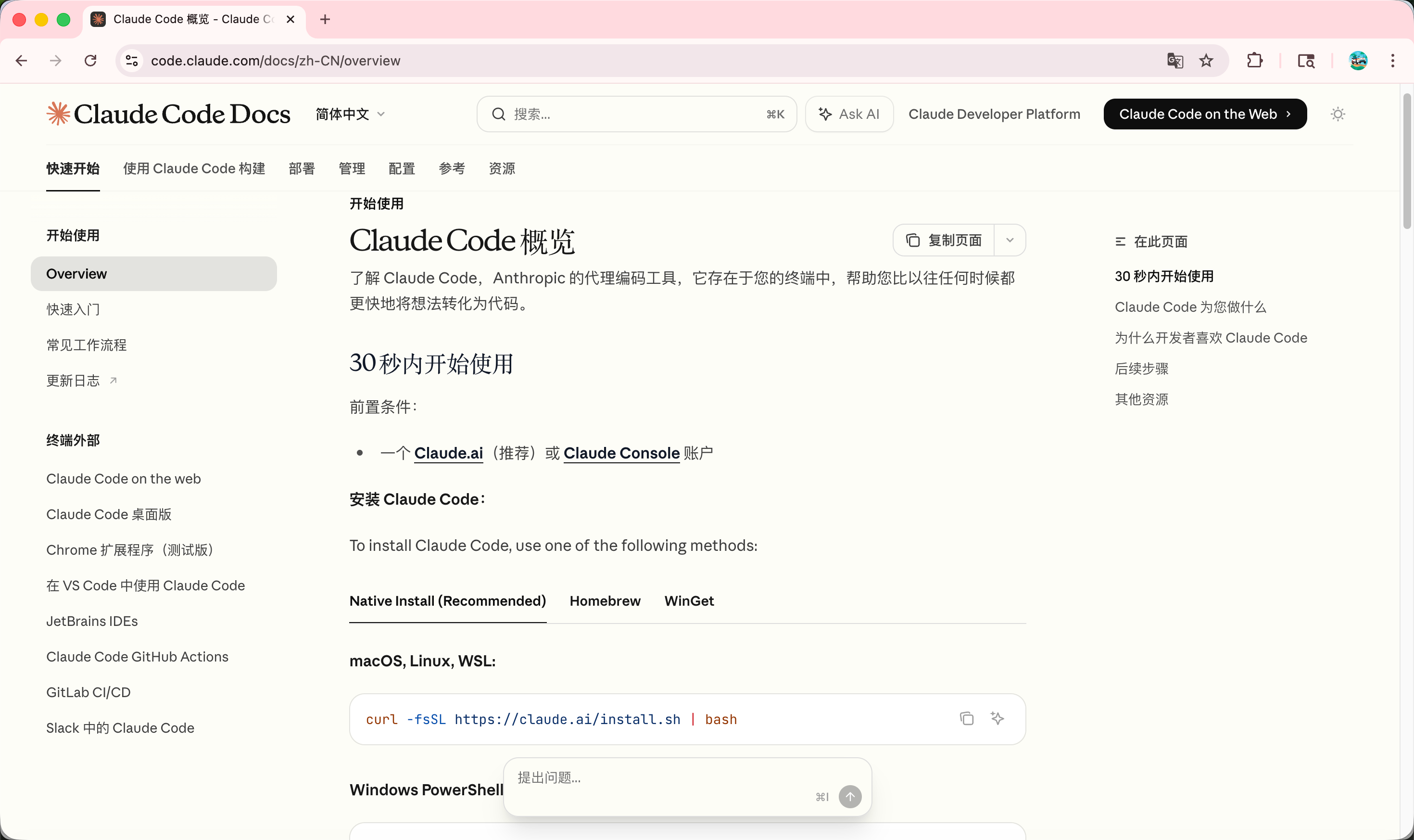 https://docs.anthropic.com/zh-CN/docs/claude-code/overview
