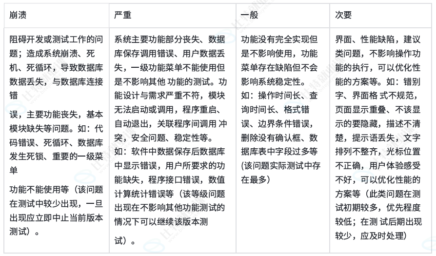 来看常用四级:崩溃、严重、一般、次要。