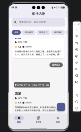 在现代移动应用开发中,个人旅行记录应用已成为用户分享和管理旅行经历的重要工具。无论是国内短途游还是海外探险,用户都希望能快速记录行程、保存照片并方便回顾。本文将通过一个基于 Flutter × OpenHarmony 的旅行记录应用首页示例,展示如何实现旅行记录的展示、添加与搜索功能,并详细解析每段代码实现原理。