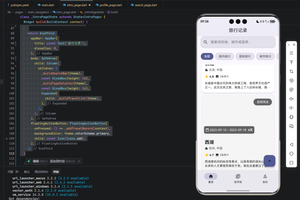 在实现旅行记录首页过程中,我深刻体会到 Flutter 的灵活性与 OpenHarmony 的分布式优势相结合的价值。Flutter 提供了丰富的 UI 组件和状态管理手段,使得列表展示、搜索和筛选功能可以模块化、高复用化实现。OpenHarmony 的跨设备特性则为未来的多终端同步提供了可能,例如手机端记录可自动同步至平板端或智慧屏,提升用户体验。同时,通过枚举和数据模型封装,可以轻松扩展新的旅行类型或数据字段,实现长期可维护的架构设计。