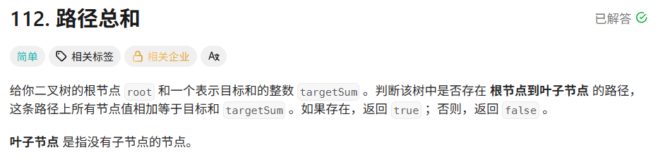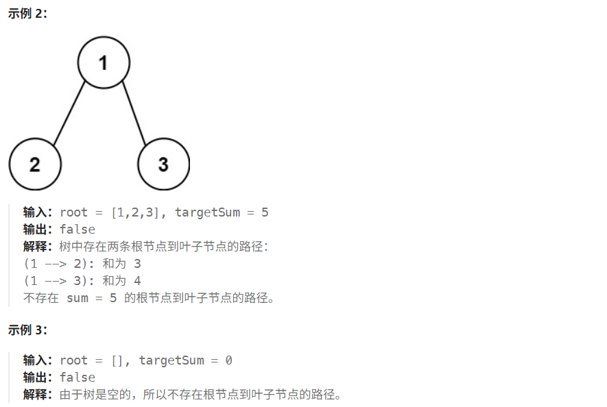 // 判断是否存在从根节点到叶子节点的路径,其节点值之和等于sum