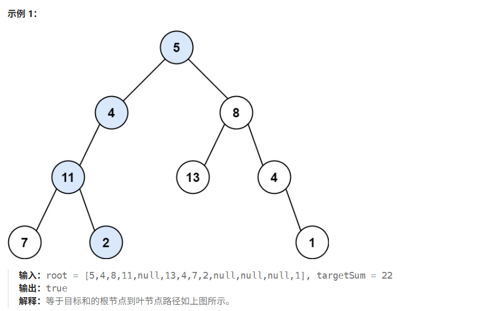 hasPathSum(root, 22)