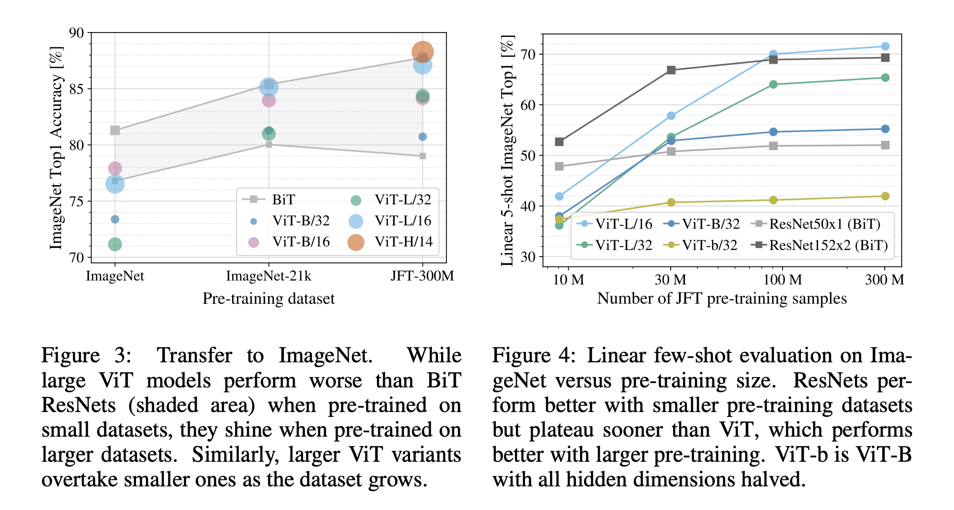 总体而言,ImageNet上的少样本结果(图4)以及VTAB上的低数据结果(表2)对于极低数据迁移似乎很有希望。进一步分析ViT的少样本特性是未来工作的一个令人兴奋的方向。