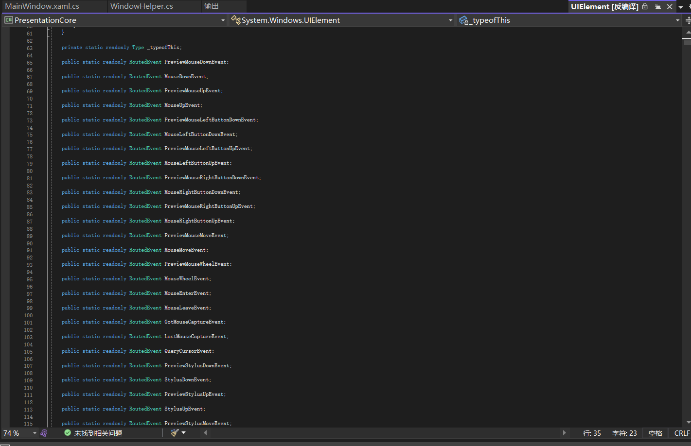 根据UIElement基类命名规则,我们可以大致猜测出一个结果,带Key的基本都是与键盘相关的事件(如按下键位、抬起键位),带Mouse的基本都是与鼠标相关的事件(如左键单击、双击),带Stylus的基本都是与触摸相关的事件,具体用到哪一类型的事件,请详细查阅一下相关说明文档即可。