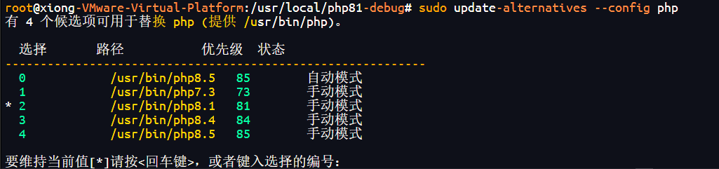配置系统默认 PHP 版本 sudo update-alternatives --config php