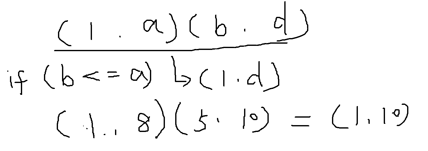 2)(a,b)(c,d),if (c<=d) then 合并为(a,max(b,d));