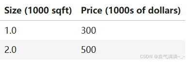 - y: 输出变量 (output variable),也常被称为目标 (target)。eg:房屋的价格。