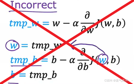 - **同时更新 w 和 b ,**按如图所示逐步进行