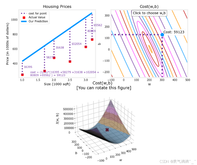 # 在等高线图中,可以点击一个点选择 w 和 b 获得最低成本