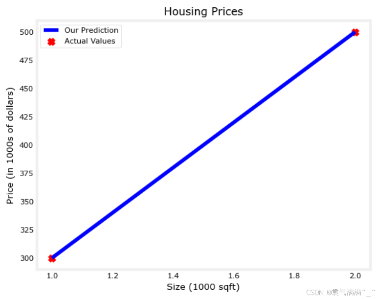 print(f"1000 sqft house prediction {w_final*1.0 + b_final:0.1f} Thousand dollars") # 1000 sqft house prediction 300.0 Thousand dollars