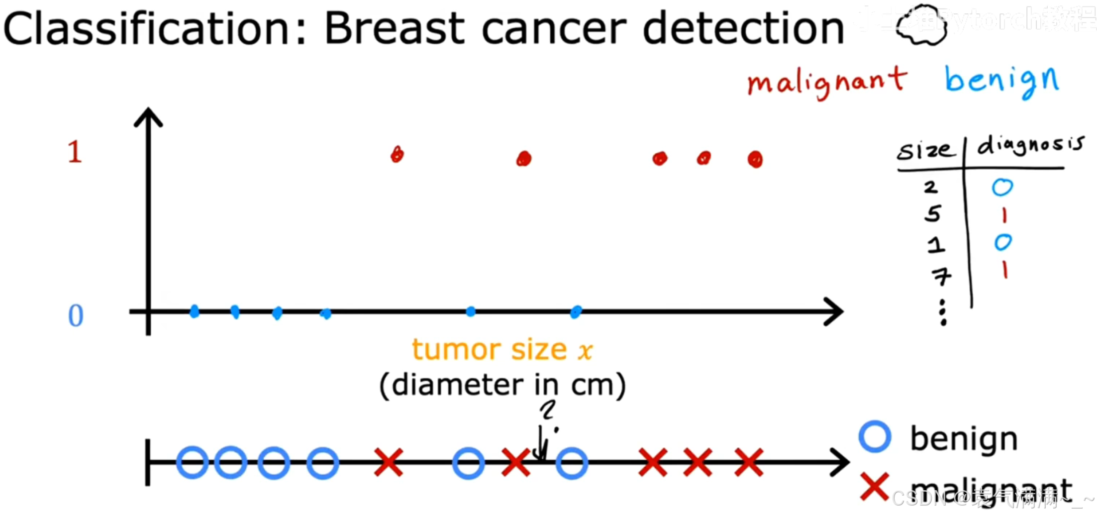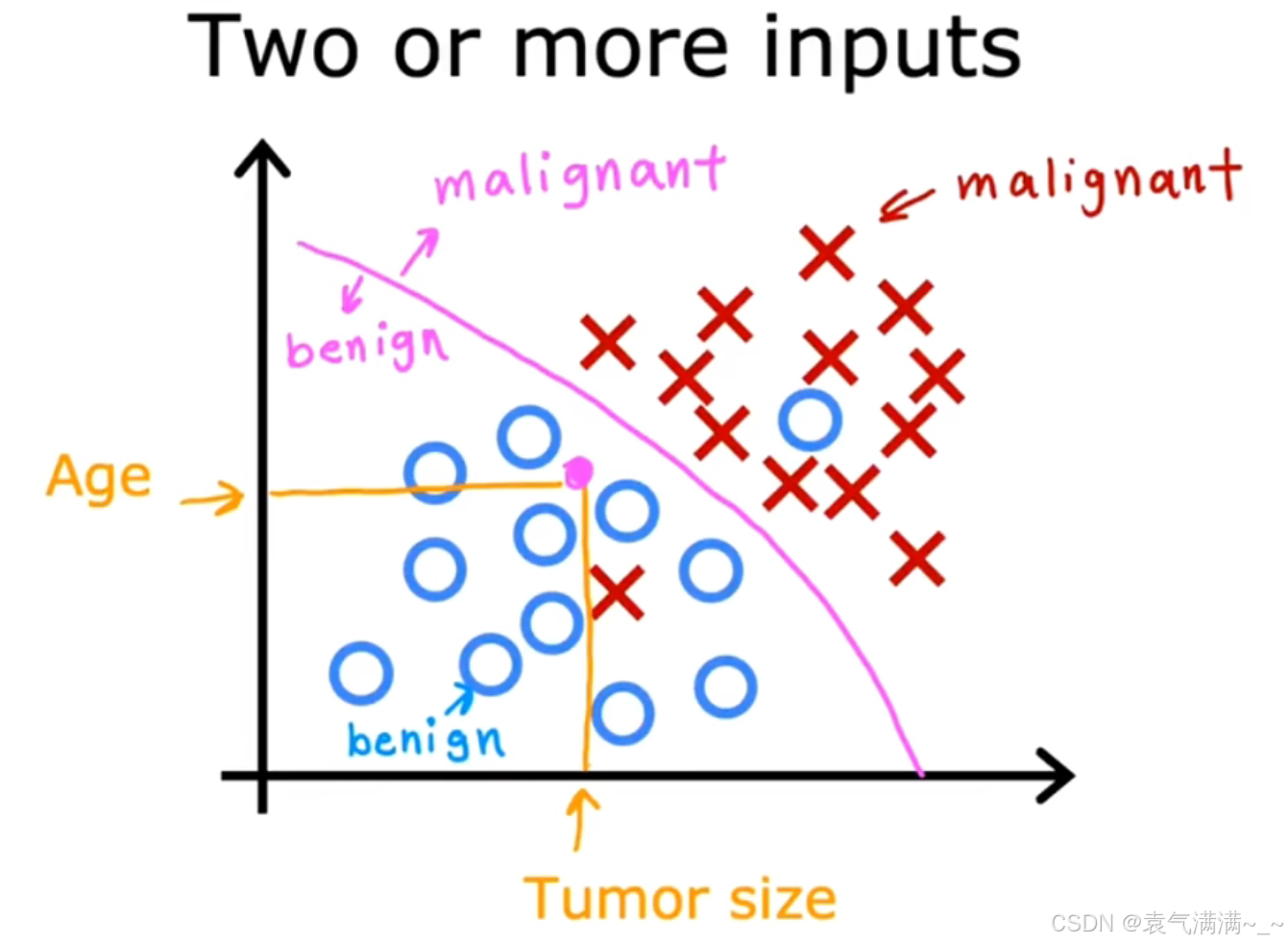 分类问题:预测的输出是一个离散的、有限的类别。eg:是否是垃圾邮件、肿瘤是良/恶性......