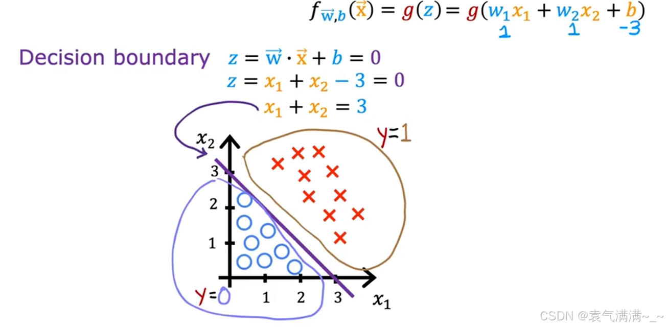 当有多个特征输入时,分类模型会尝试找到一个决策边界,来区分不同的类别。