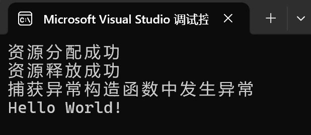 3.即使构造函数抛出异常,资源管理类的析构函数仍会被调用,从而保证资源释放。