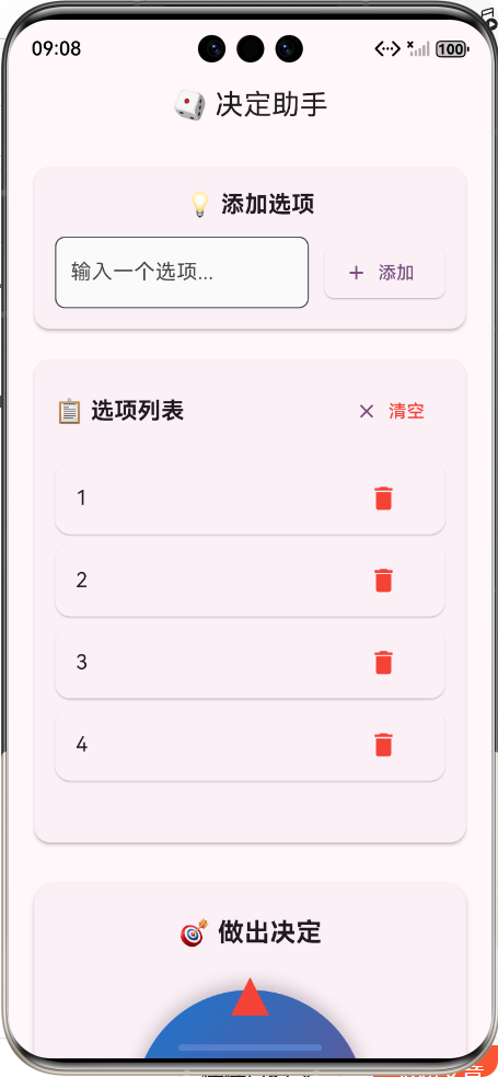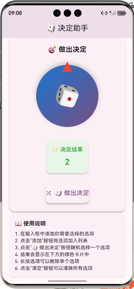 - 做出决策:点击"🎲 做出决定"按钮,观看旋转动画,等待结果