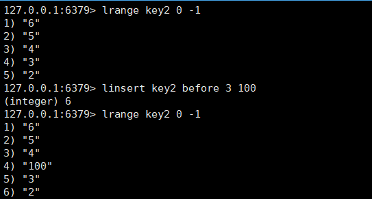 linsert:这个指令可以在指定的位置插入元素,可以通过before和after指定元素要插入在指定元素之前还是指定元素之后,返回值是得到的新的list的长度。